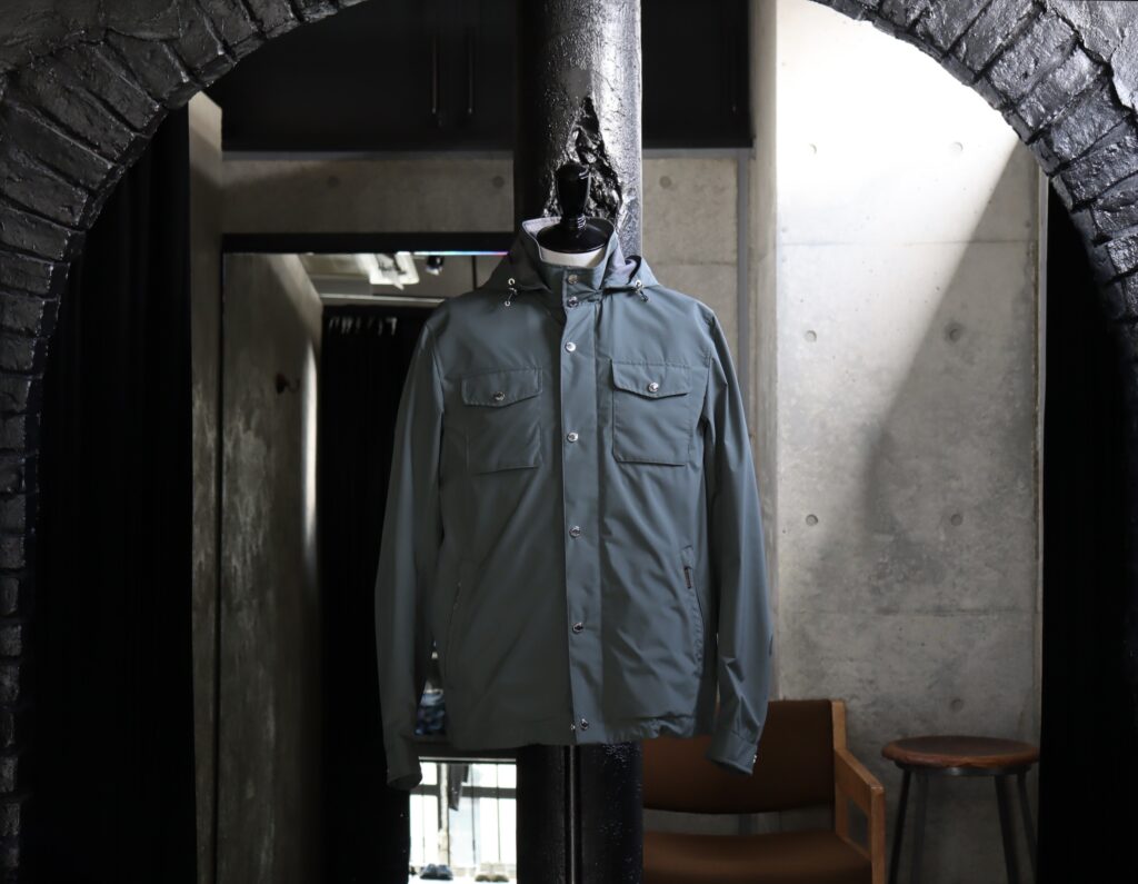 これから時期に嬉しい、気軽に羽織れるシャツスタイルのアノラックパターン。こちら今季登場のNEWカラーです。Acquaライン(2つの傘マーク)に属するモデルで、防水メンブレンを備えた軽量テクニカルファブリックを使用しています。