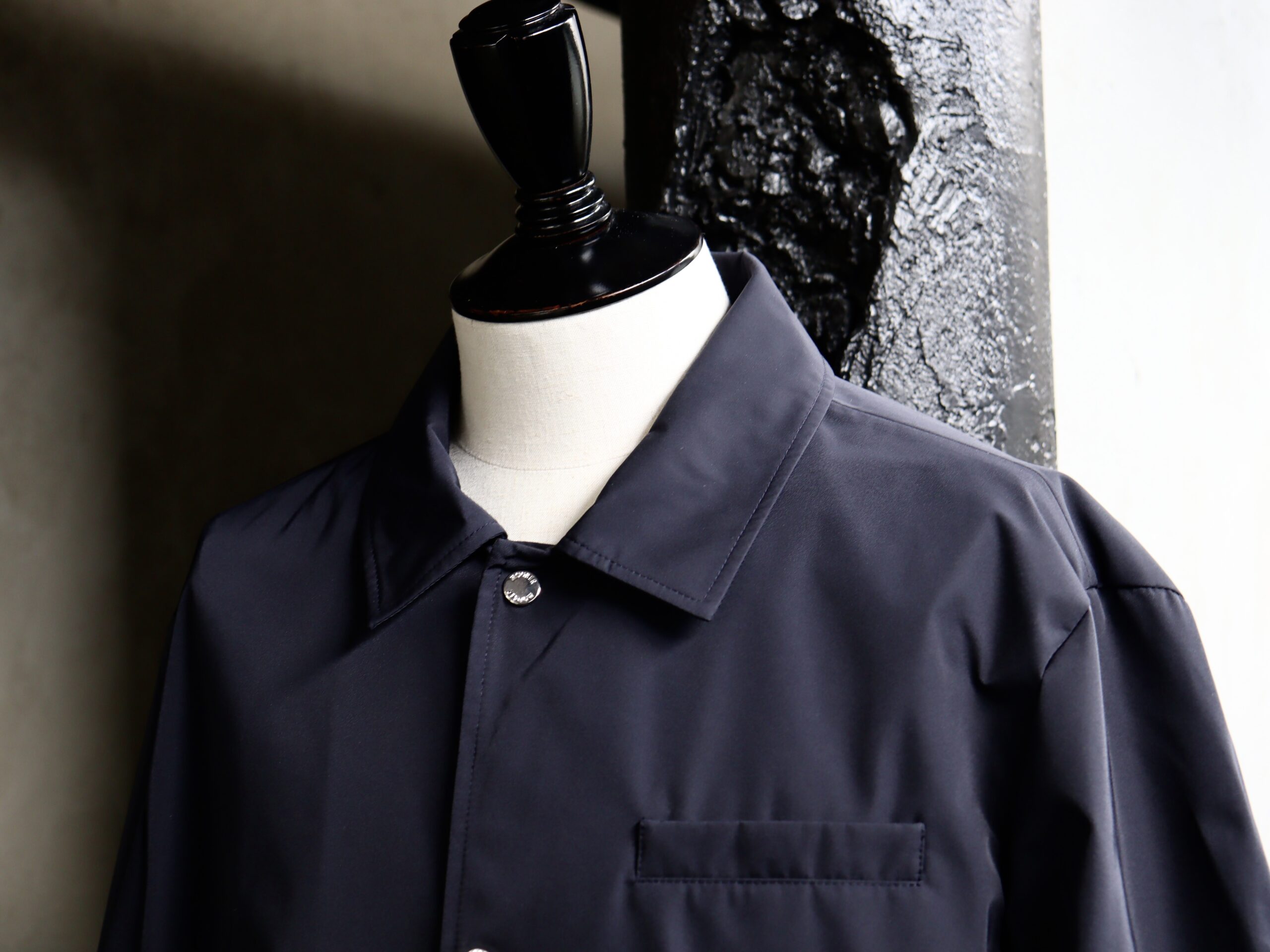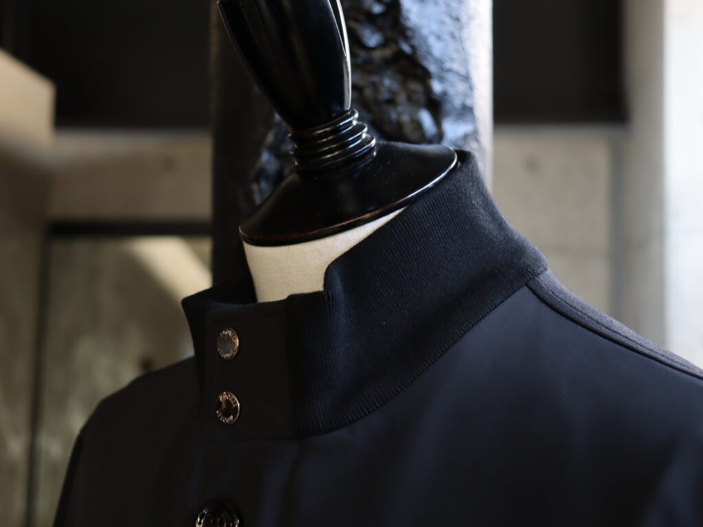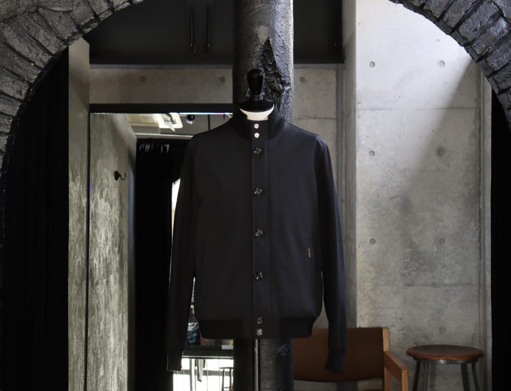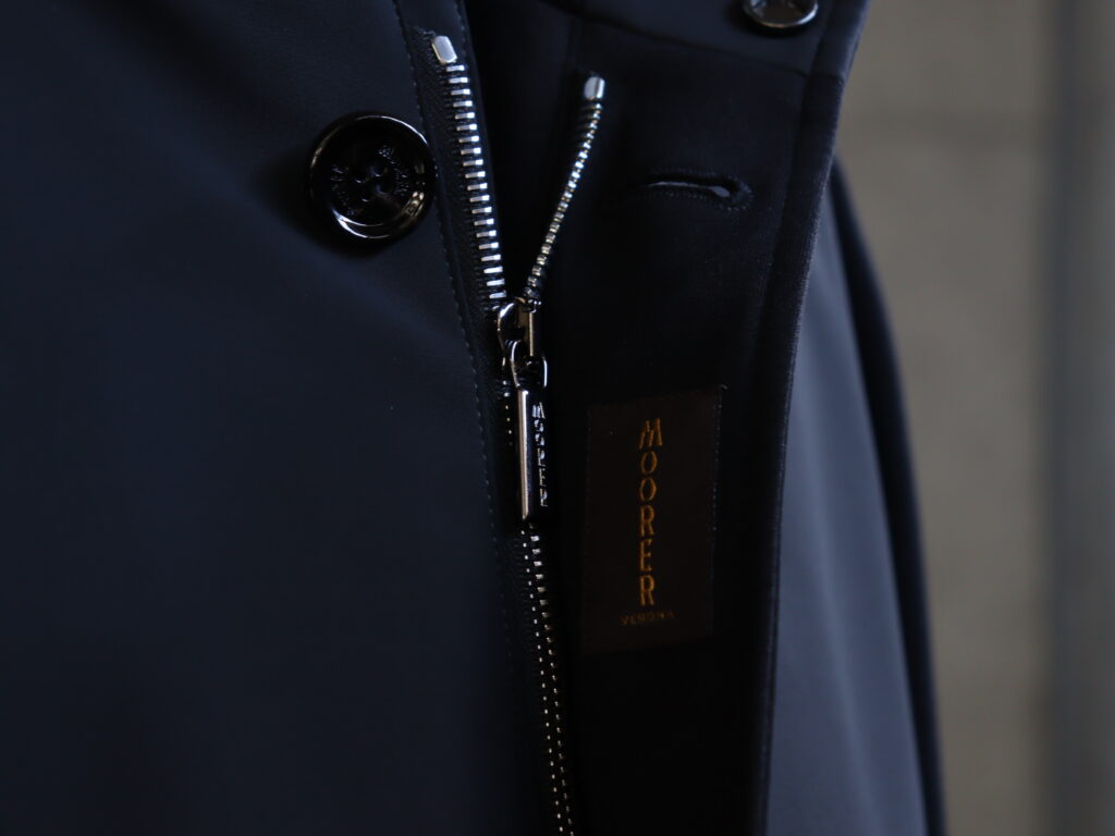 こちらのモデルRAMOSは、直営店でも取り扱いの無い大変貴重なモデル。男性の定番形と言えるコーチジャケット仕様をベースに、MooRERらしい高級感のエッセンスを加えた一枚です。