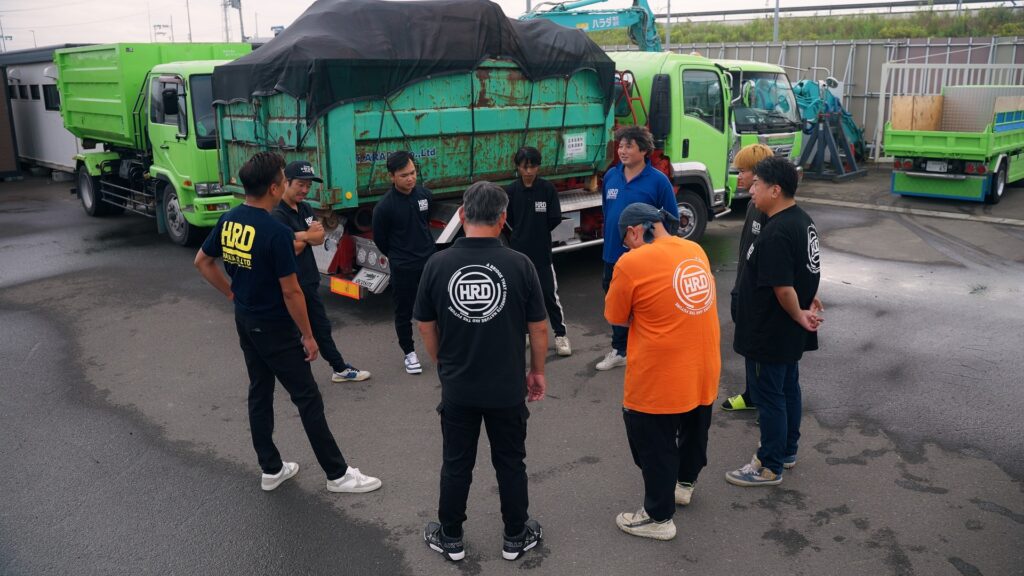 このロゴはユニフォームだけにとどまらず、会社のトラックにも採用されています。街中で「HRD」の文字を目にする機会を増やし、会社の存在感を自然に印象付ける。作業着や車両を通じてブランドを体現する、ハラダ株式会社様らしい戦略です。